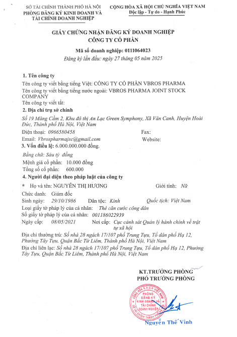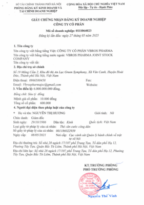 • Tên công ty: Công ty Cổ phần VBROS Pharma